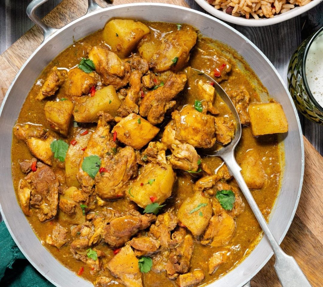 West African-style Curried Chicken with rice and peas