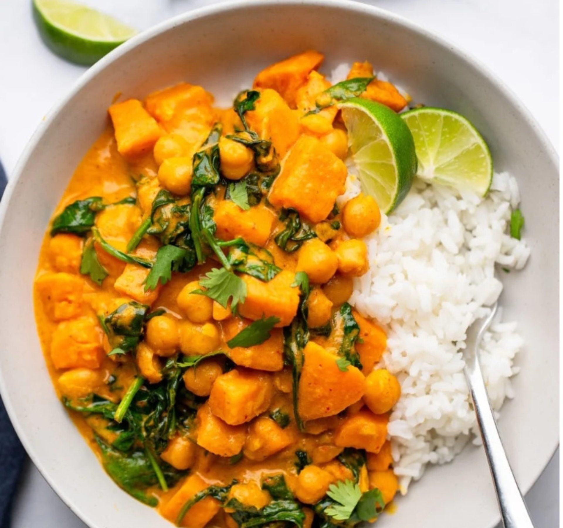 – Spiced sweet potato and bean curry with coconut infused rice