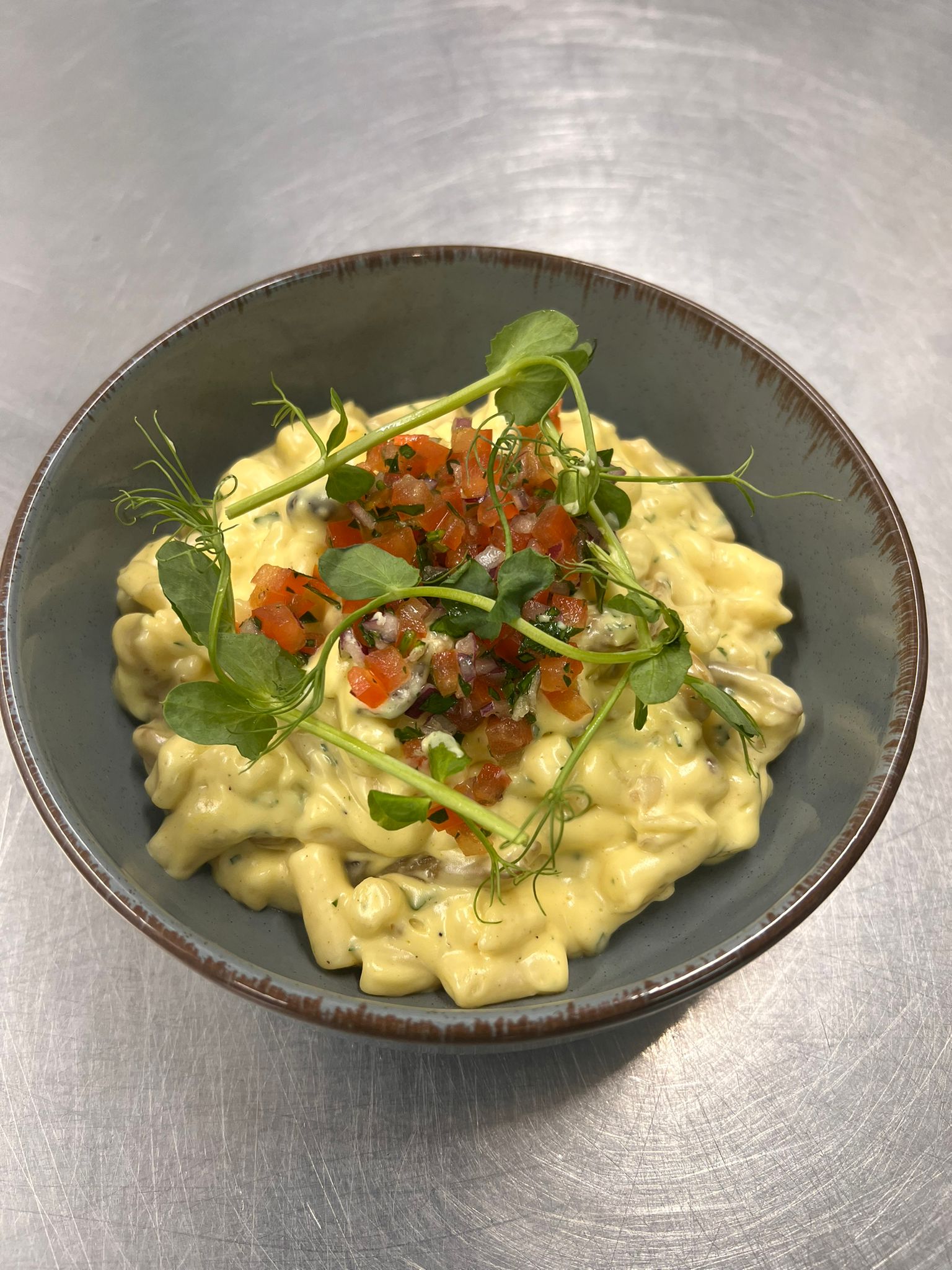 Wild Mushroom and Black Truffle Macaroni cheese with roasted tomato relish